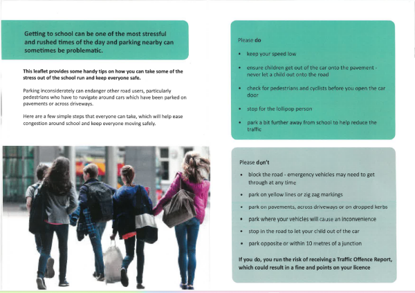 We would like to share some important information regarding safe parking practises for school drop-offs and collections. We have received a helpful leaflet from our local PCSO, which highlights key guidelines to ensure the safety of our students and ease congestion around the school. Your cooperation in following these guidelines is greatly appreciated. This will not only help keep our roads safer but also enhance the overall school drop-off and pick-up experience for everyone.